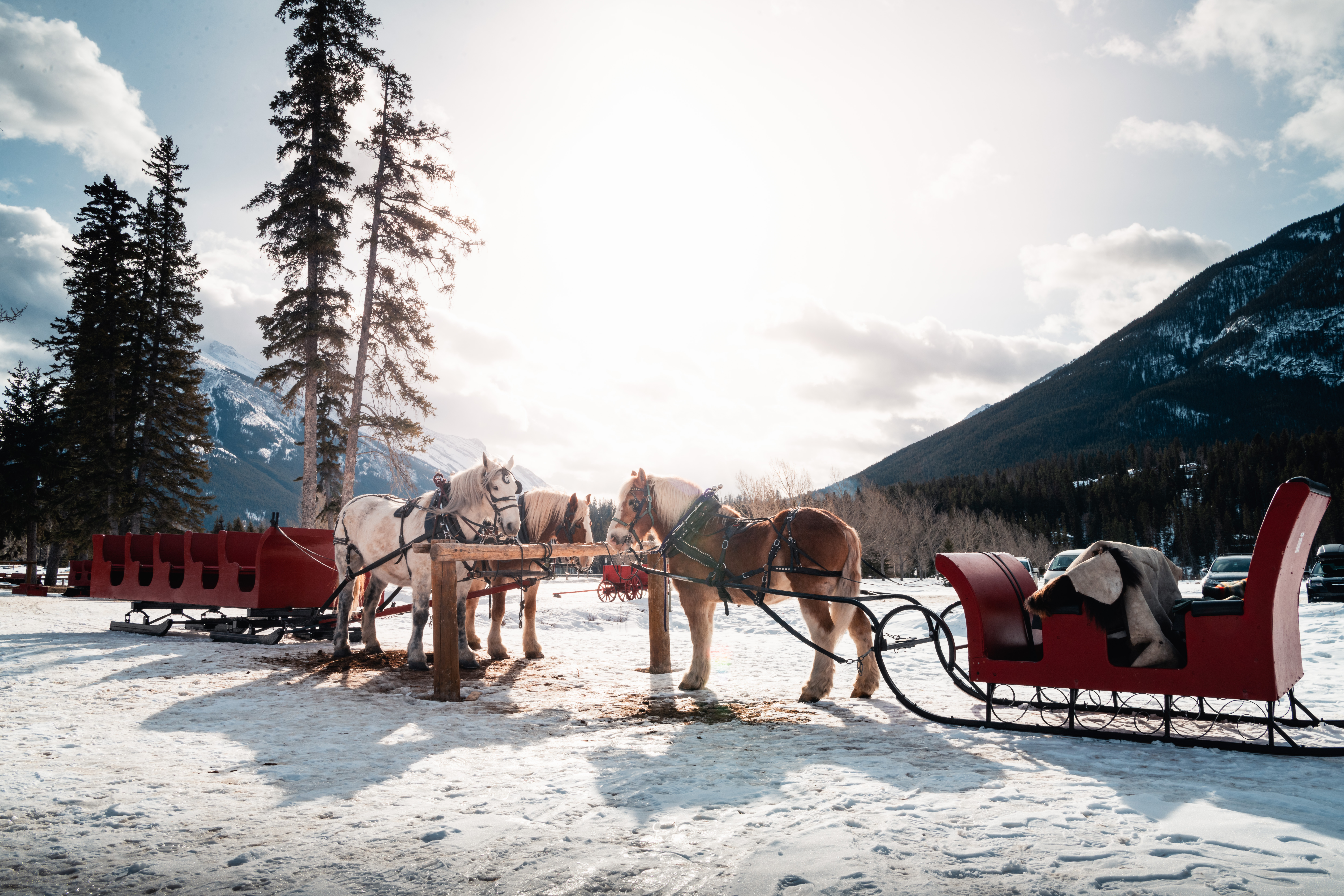 Cuddle up together under an authentic buffalo hide as your sleigh glides through the winter landscape, surrounded by the serene beauty of the snow-covered Banff area. The crisp mountain air and stunning views of the surrounding peaks will set the stage for an unforgettable experience.