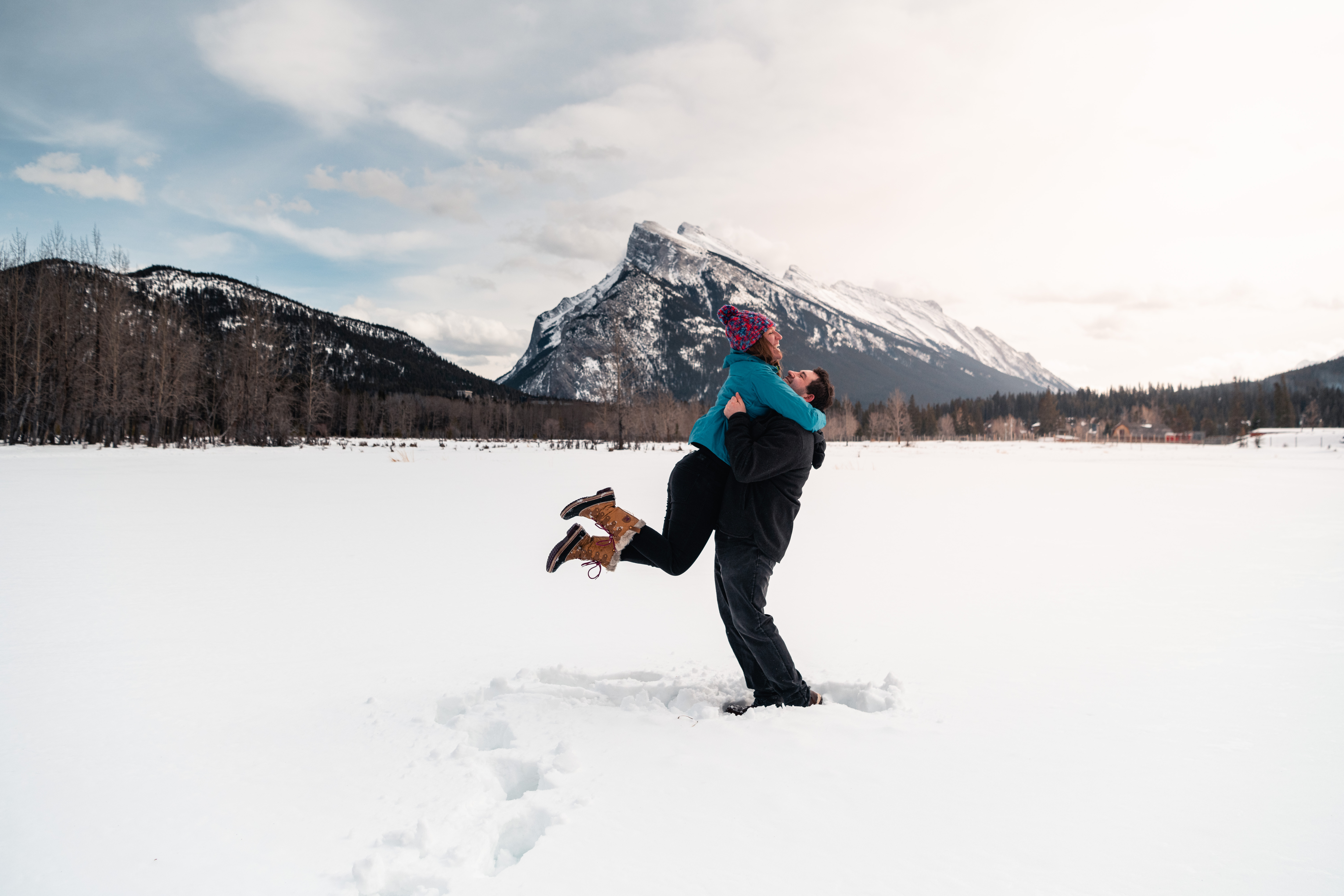 To top it off, relax with a warm drink (weather permitting), allowing you both to savor the peaceful, magical atmosphere of the Canadian Rockies.